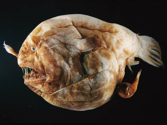 Žuvys, kurios naudojasi bioliuminescencija medžioti grobiui yra vadinamosios velniažuvės (angl. anglerfishes). Velniažuvė pasižymi didele galva, aštriais ilgais dantimis ir ilga plona mėsinga atauga ant viršugalvio. Ši atauga, kuri dar vadinama siūlu (angl. filament), pasižymi viena įdomia savybe – jos gale yra toks rutuliukas (vadinamas esca), kurį velniažuvė gali užžibinti. Mažesnės žuvys, susidomėjusios šviesos taškeliu, priplaukia pasižiūrėti iš arčiau, kas per daiktas. Kai auka, pakankamai arti priplaukusi, pamato už escos besant didžiulių tamsių velniažuvės nasrų, vargšei žuvelei paprastai būna per vėlu sprukti šalin. (9 pav.)