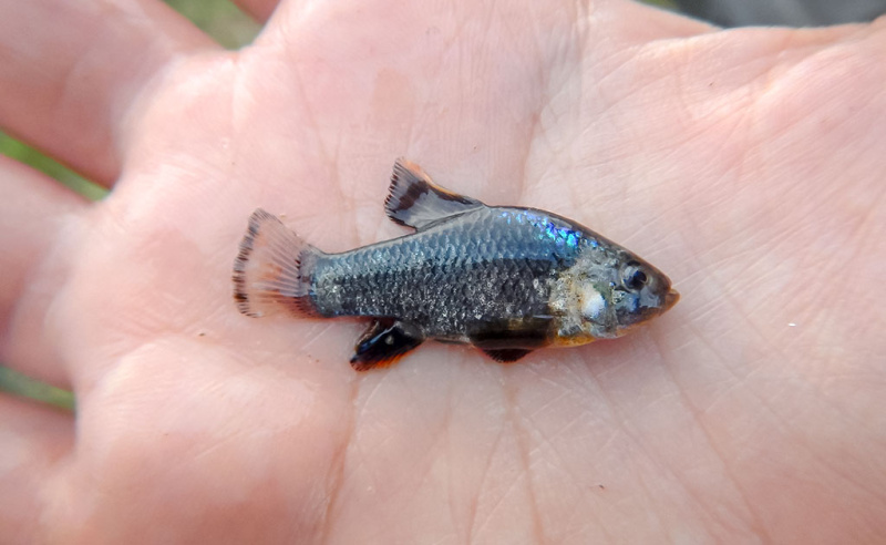 Šiai druskingo vandens mėgėjai konkurenciją sudaro žuvelė Cyprinodon variegatus, dar vadinama sheepshead minnow, paplitusi palei Šiaurės Amerikos pakrantes. Ji geba gyventi druskos pelkėse ir uždarose lagūnose, kur druskingumas kartais viršija 90 promilių. Pastarosios žuvys turi puikiai išvystytą osmoreguliacinę sistemą – jų inkstai ir žiaunos efektyviai šalina druskos perteklių, tuo pačiu išlaikydami gyvybiškai svarbų vandens kiekį organizme.