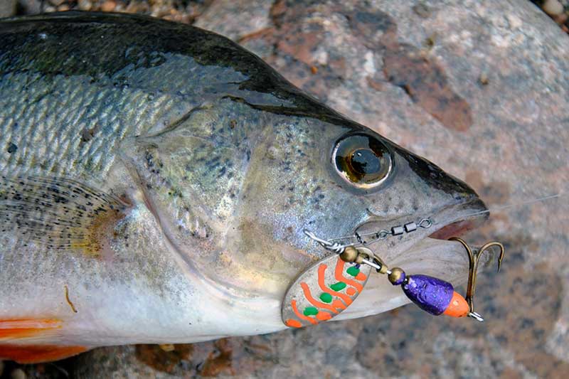 Balta (11 pav.). Pasiteisina dideliuose gyliuose bei drumstame vandenyje. Dažna dažant voblerių ir kitų dirbtinių masalų šonus, papilves. Gera apniukusią dieną. Patys efektyviausi deriniai su mėlyna, žydra, raudona.