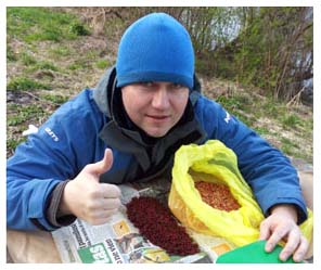 Atvykę į naują vietą prie Nevėžio radome atkarpą, kur galėjome įsitaisyti trise, išsitraukėme burtus kas kur sėdės ir pradėjome pasiruošimą. Pirmiausia – jaukai. Kaip jau įprasta – tai prancūzų firmos „Sensas“ jaukai: Riviere + Gross Gardons + klijai PV1 + atraktorius Gardonix bei upinis molis.