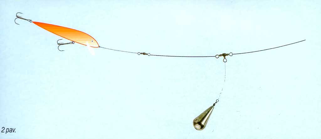 Tačiau vardiju visus: paprastas suktukas, jungiantis pagrindinį valą su metaliniu ar fluorokarboniniu (jei gaudome lydekas), ar monofilamentiniu pavadėliu; toks pats, įmontuotas į lašo formos svarelį; ir trišakis, prie kurio rišamas svarelis ir pavadėlis vobleriui. Gramzdо svoris irgi nėra griežtai nustatytas, bet šiоji sistemėlė labiau skirta stambių plėšrūnų žvejybai didesniais masalais, tad ir svarelio masė paprastai ne mažesnė kaip 50 g, nes visgi vobleriai yra ne itin maži.
