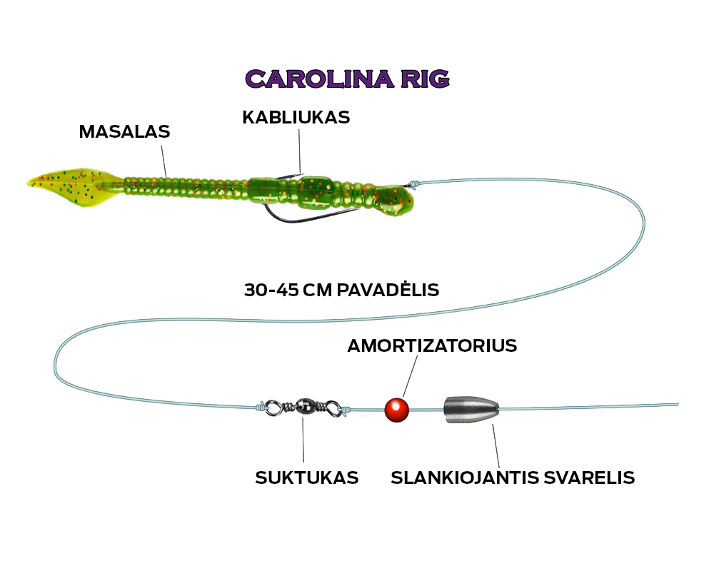 Kaip ir kuo žvejoti naudojant karolinišką sistemėlę