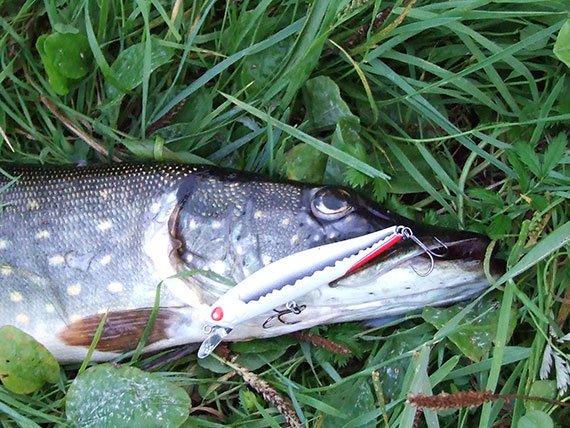 Nutarėm parplaukti į krantą ir kiek pamankštinti kojas. Po trumpos arbatos pertraukėlės žūklė prasidėjo iš naujo. Meteorologinė situacija kiek pasikeitė. Protarpiais tarp debesų nušvisdavo saulė. Maždaug keturioliktą valandą vienas spiningas sulinko nuo smūgio – lydeka atakavo pasteliniais žalsvais tonais nuspalvintą Lucky John Makora. Kabliukai mirtinai įsisegė lydekai į pažiaunę. Kai lydeka nepataiko pastverti masalą ir kabliukai įsminga iš išorės, labai dažnai plėšrūnėms pasiseka išsegti kabliukus ir pasprukti. Šįkart keturių kilogramų egzemplioriui tai padaryti nepavyko. Tad reikia pažymėti dar vieną Makora pliusą – trišakiai labai kokybiški ir kibūs.