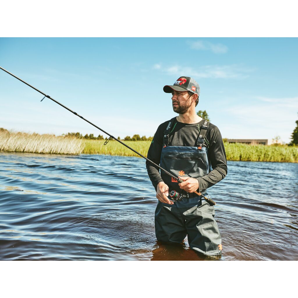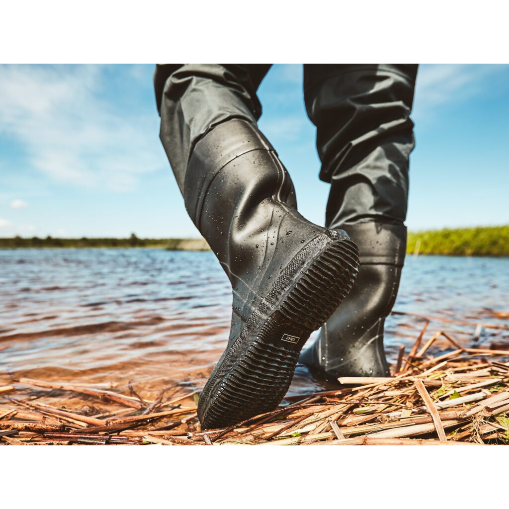 Bridkelnės pagamintos iš aukštos kokybės keturių sluoksnių „kvėpuojančios“ membraninės medžiagos. Minimalus siūlių kiekis, patogus sukirpimas, puikus balansas tarp ilgaamžiškumo, atsparumo vandeniui ir drėgmės išgarinimo savybių. Batai pagaminti iš lengvos ir patvarios gumos. Neopreninis vidpadis, kad būtų patogiau ir šilčiau.