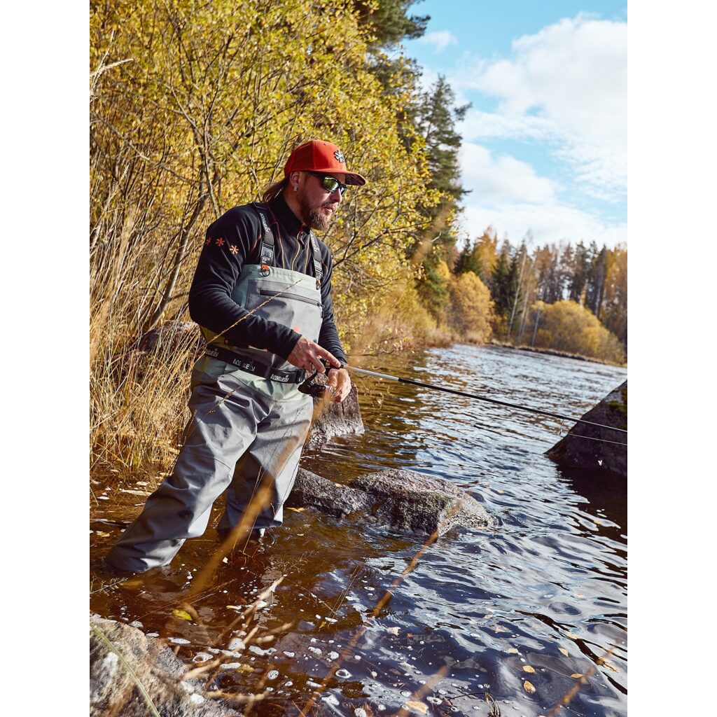 Bridkelnės pagamintos iš aukštos kokybės keturių sluoksnių „kvėpuojančios“ membraninės medžiagos. Minimalus siūlių kiekis, patogus sukirpimas, puikus balansas tarp ilgaamžiškumo, atsparumo vandeniui ir kvėpavimo. Kojinės pagamintos iš tankaus, patvaraus 5 mm storio neopreno.