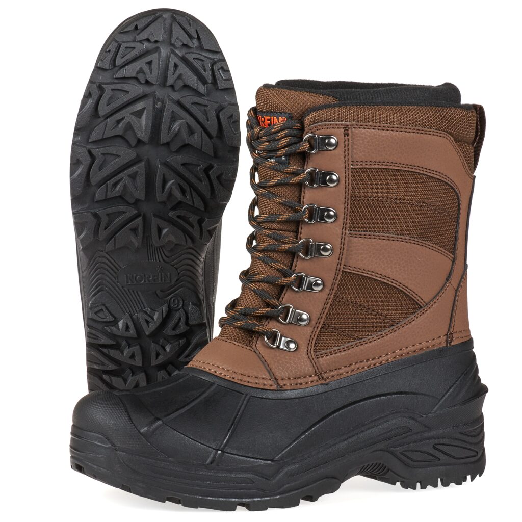 Norfin Force - šilti, suvarstomi ir patogūs žieminiai batai. Patvarus TPR termoplastinės gumos padas, lengvesnis nei PVC, turi didesnį elastingumą ir labiau atlaiko bjaurių oro sąlygų poveikį. Išimamas, trisluoksnis įdėklas, pagamintas su „Thinsulate“ pašiltintoju - sušildo įvairiomis sąlygomis. Įdėklas išimamas ir gali būti lengvai išdžiovintas. Komfortabili temperatūra iki -25 °C.