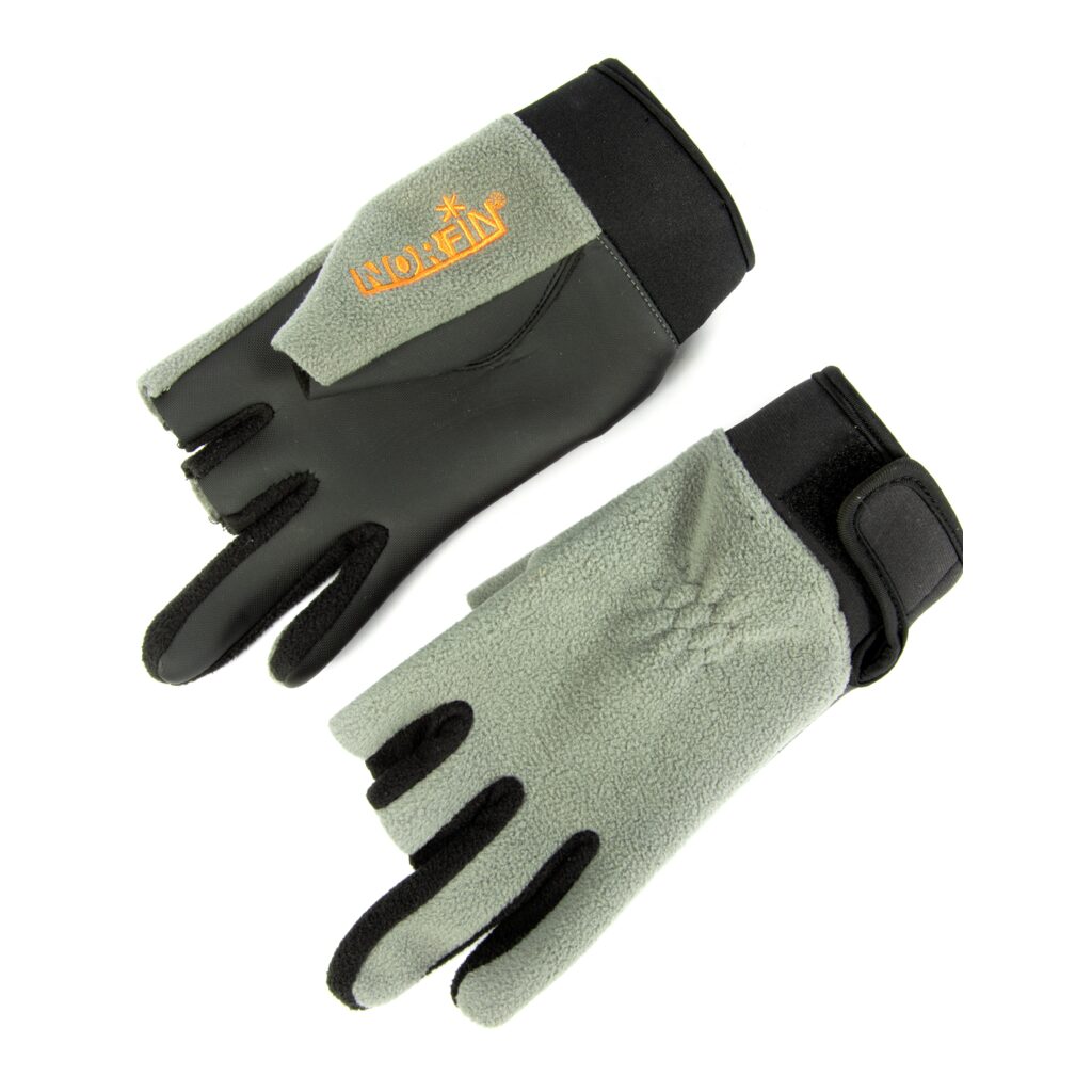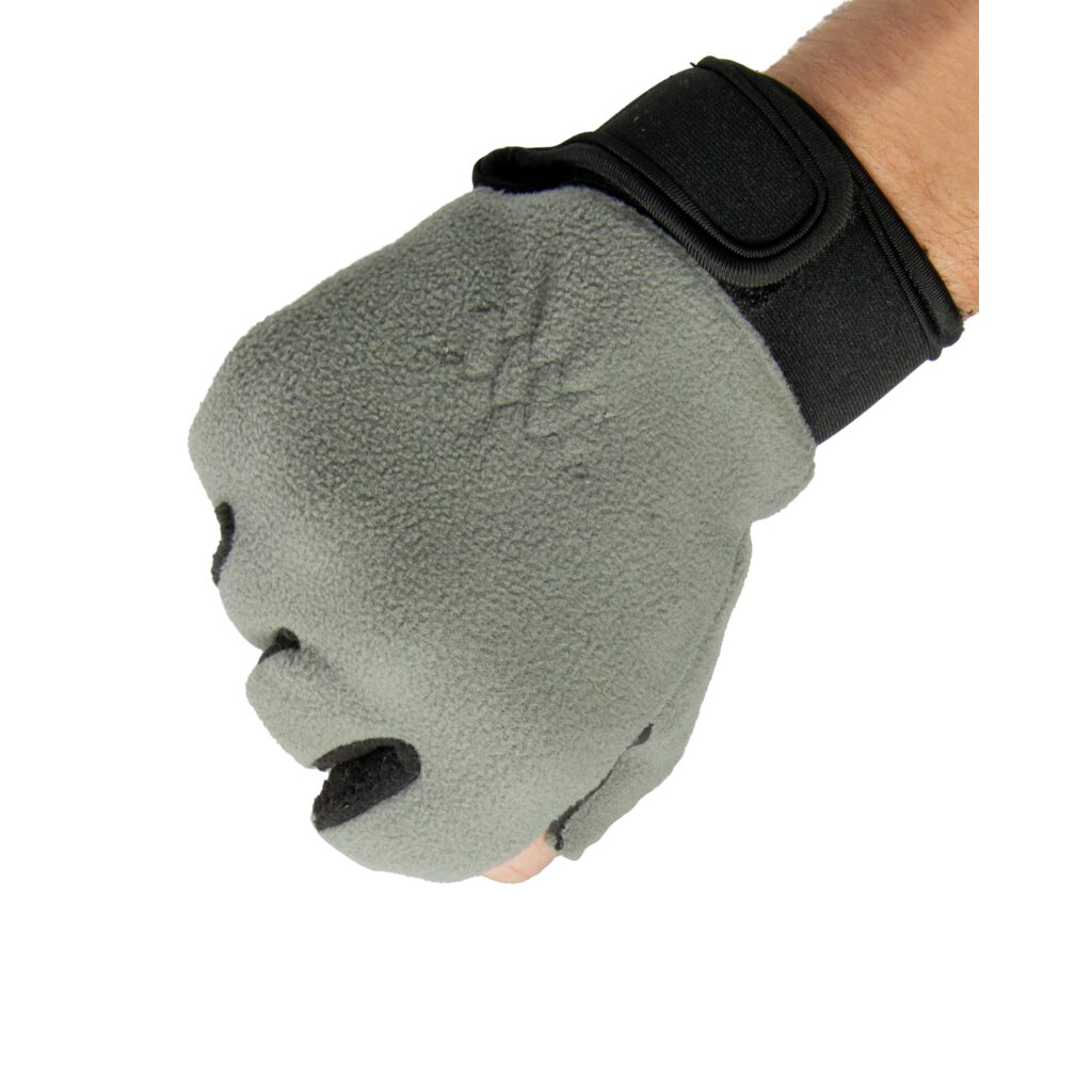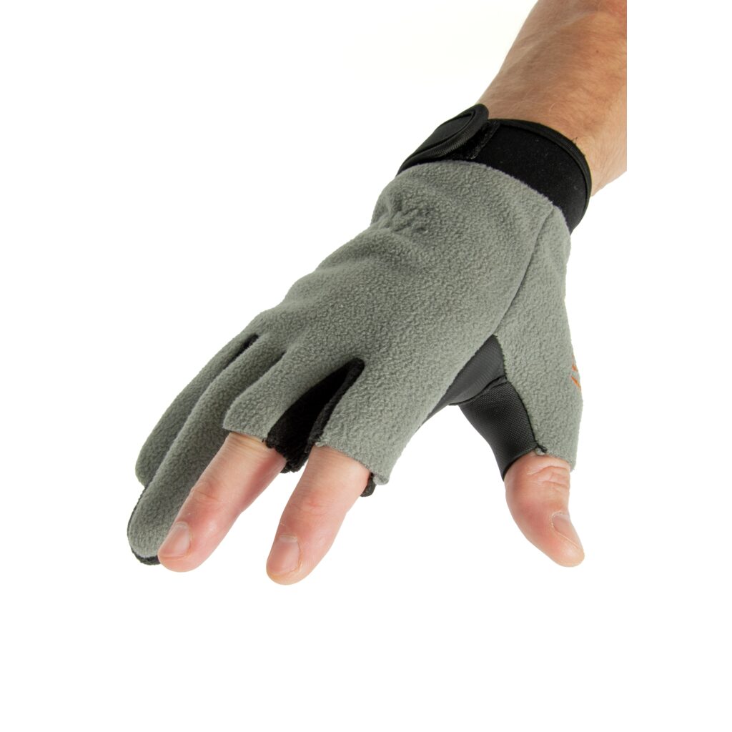 Pirštinių nykštys, vidurinis ir rodomasis pirštai yra atviri, kad būtų galima tiesiogiai liestis su žvejybos reikmenimis.