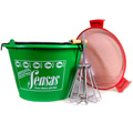 Pagrindinė jaukui ruošti kibirų savybė – šie kibirai gana platūs, kad būtų patogiau maišyti jauką ir į jų dugną nenusėstų vanduo, stambesni ir sunkesni ingredientai. Juose jaukas taip pat dažnai ir laikomas visos žūklės metu. - Kibirai, kurie skirti tik laikyti jauką, gali būti siauresni, kampuoti, nes tokie kibirai įsistato į specialius stovus. Šios rūšies kibirai paprastai būna su dangčiu. Laikikliai kibirams dažniausiai naudojami tada, kai žvejojama įsibridus arba klampiose pakrantėse. Į laikiklius įstatomi kibirai su jauku ir meškeriotojui nereikia nuolat bristi į krantą, kad galėtų pasiimti jauko.