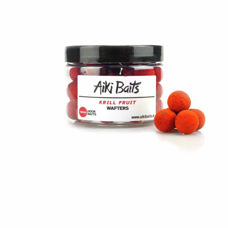 Boiliai Aiki Baits Balanced Krill Fruit - balansiniai, natūralaus plūdrumo (Wafter) boiliai, pagaminti iš tu pačių natūralių skystų ir miltelinių priedų kaip ir Aiki Baits Krill Fruit boiliai. Rudos spalvos, saldaus skonio, stipraus vėžiagyvių (krill) kvapo su subtiliu saldžių vaisių aromatu. Norint dar labiau padidinti šių boilių patrauklumą, rekomenduojame juos papildomai mirkyti dipu Aiki Baits Krill Fruit.