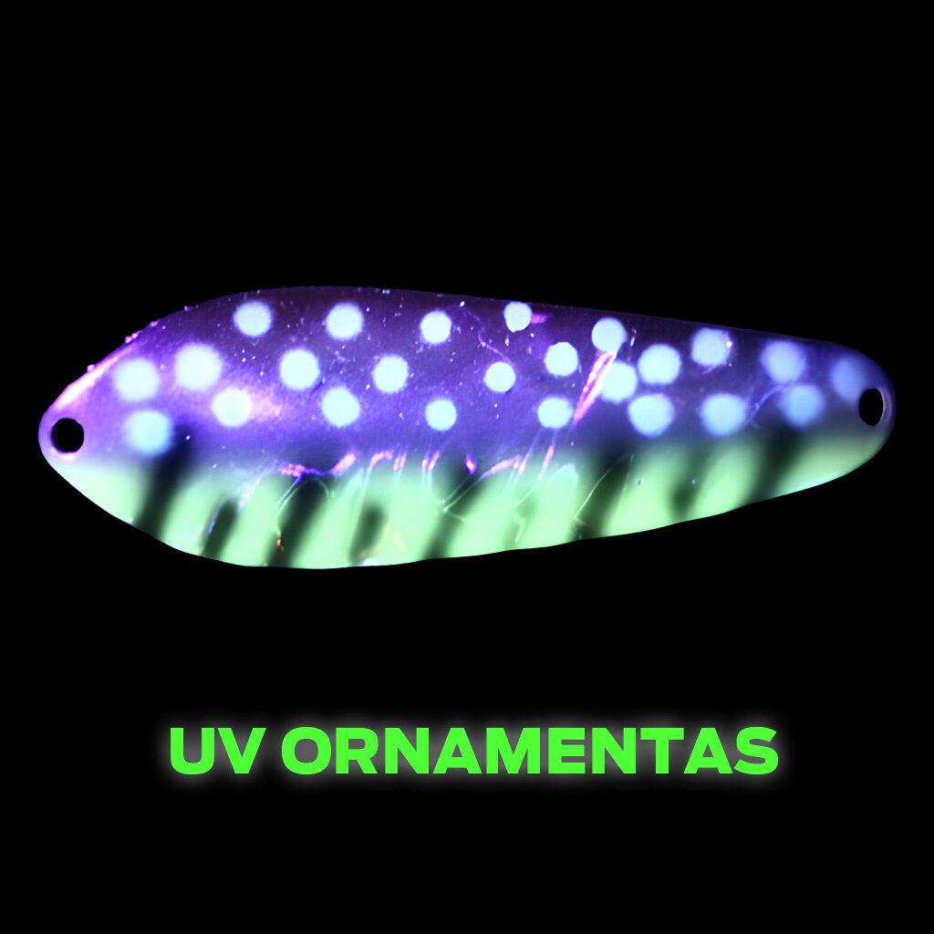 Blizgė Iron Wolf Pulsar - agresyvus žaismas vandenyje, provokuojantis spalvinimas su UV ornamentui, pateikia blizgę puikiai tinkančia lašišų, šlakių bei lydekų žvejybai.