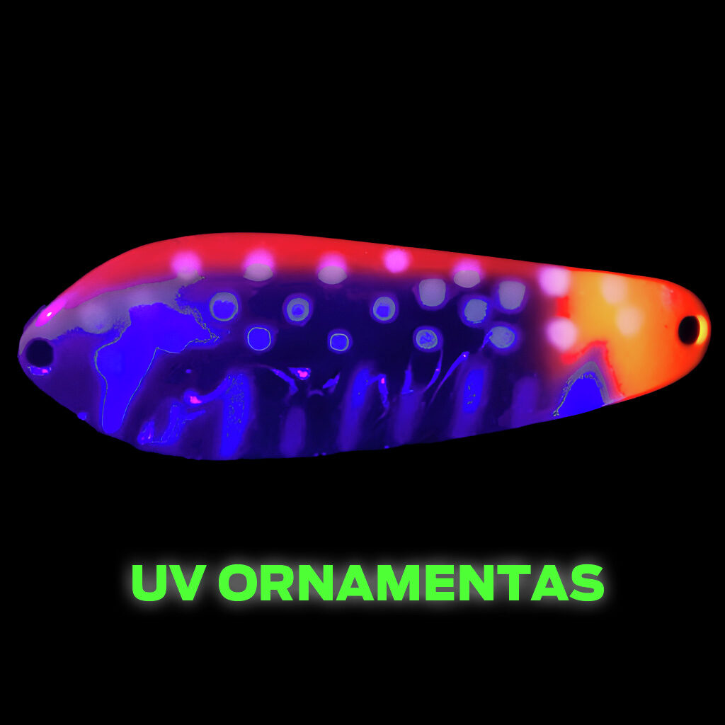 Blizgė Iron Wolf Pulsar - agresyvus žaismas vandenyje, provokuojantis spalvinimas su UV ornamentui, pateikia blizgę puikiai tinkančia lašišų, šlakių bei lydekų žvejybai.