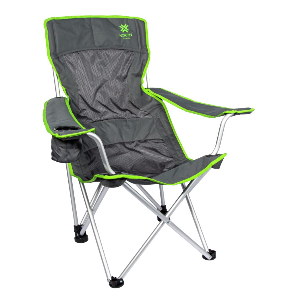Norfin Leknes - sudedama kėdė su aliuminio rėmu ir aukštu atlošu. Minkšta nugaros dalis, medžiaginiai porankiai su puodelio laikikliu, patogi ir tvirta.