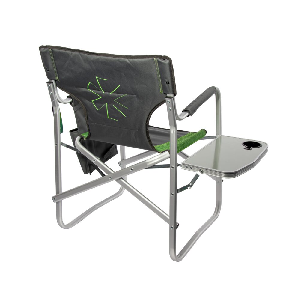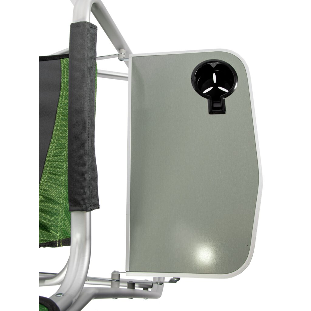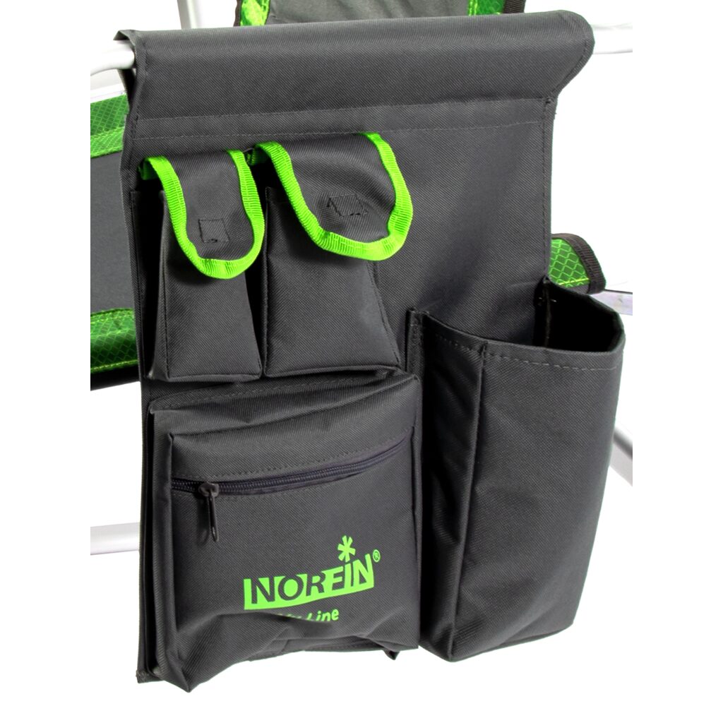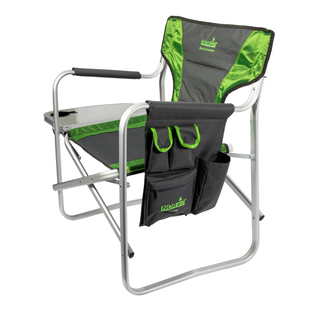 Aliuminė kėdė Norfin Risor NF su aliuminiu karkasu, atlenkiamu staliuku, šoninėmis kišenėmis telefonui ir kitoms smulkmenoms, paminkštinta sėdynė ir nugarėlė. Kojų konstrukcija užtikrina papildomą kėdės stabilumą, neleidžia smigti į smėlį arba puria žemę.
