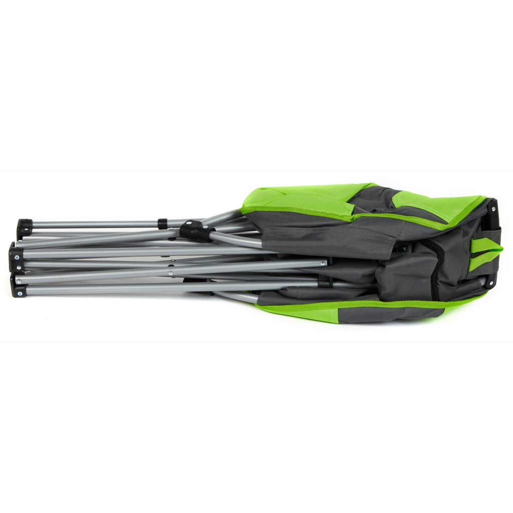 Apvalus sulankstomas fotelis Norfin Vihti. Paminkštinta sėdynė ir atlošas yra specialiai suformuoti taip, kad sumažintų kūno apkrovą ir užtikrintų maksimalų komfortą bei atsipalaidavimą. Tvirta konstrukcija, plastikiniai antgaliai ant kojų daro šį fotelį kuo stabilesnį ir patogesnį. Kėdės šone yra nedidelis pakabinamas puodelio laikiklis. Nugarėlėje yra talpi užtrauktuku užsegama kišenė smulkiems daiktams. Komplektuojamas su dėklu, kad būtų patogu transportuoti.