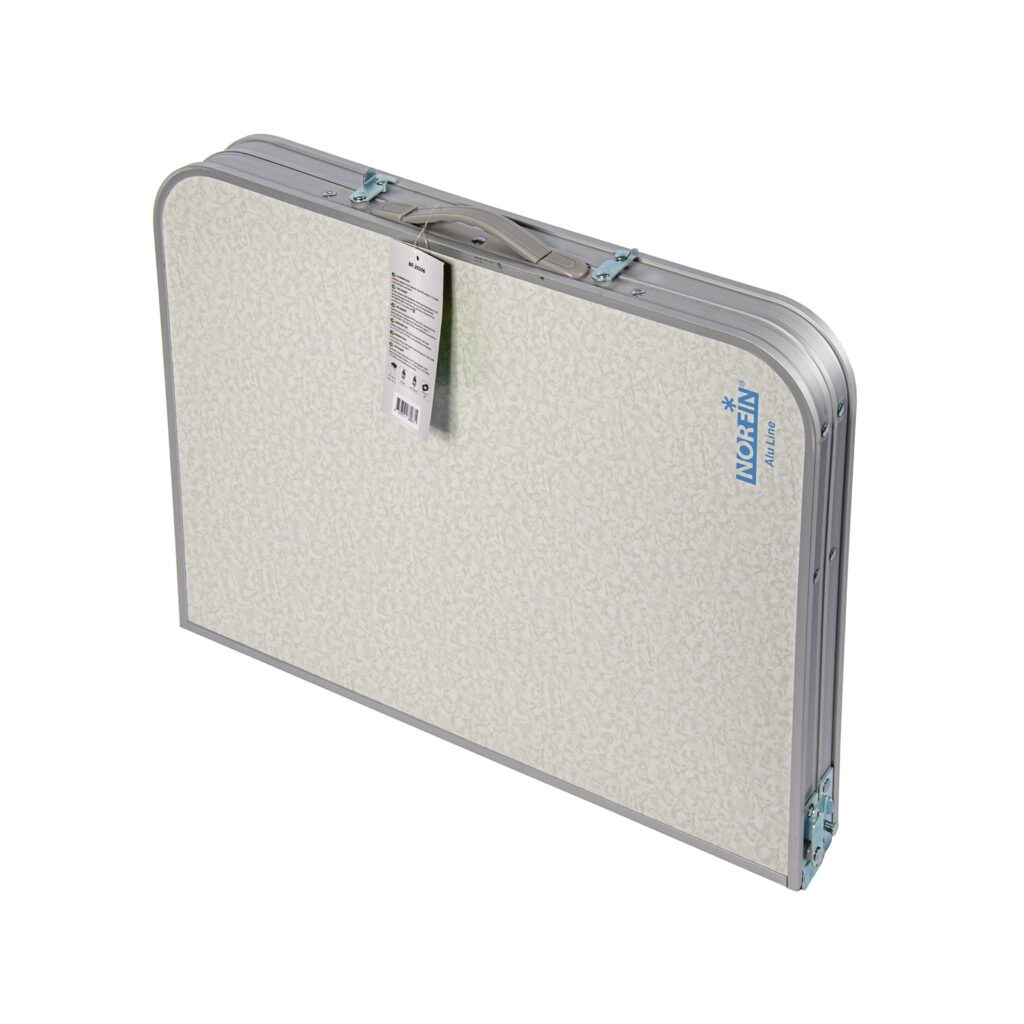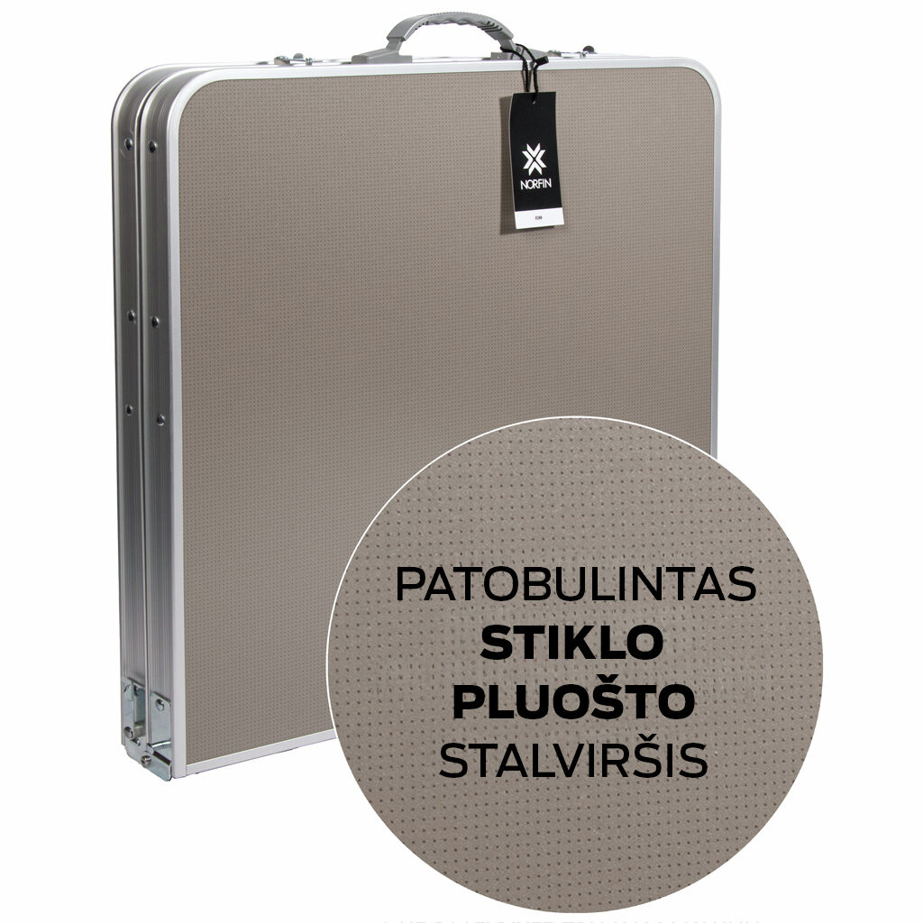 Norfin Gaula - sulankstomas stalas su aliuminio korpusu ir patobulintu stiklo pluoštu armuoto plastiko (stikloplastiko) stalviršiu, kuris yra atsparus drėgmei ir neišbrinks sušlapęs. Ši savybė yra ypač svarbi lauko sąlygoms.