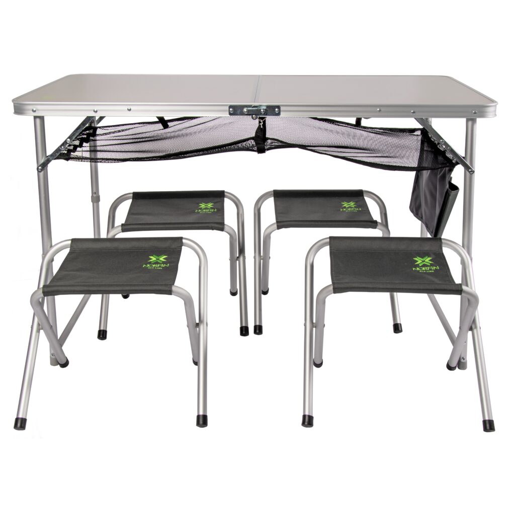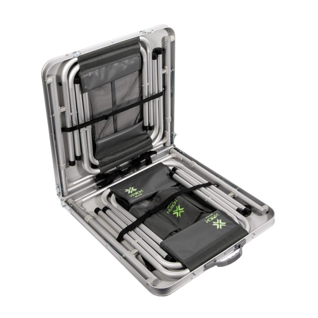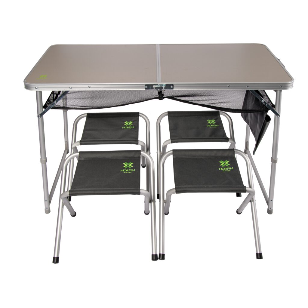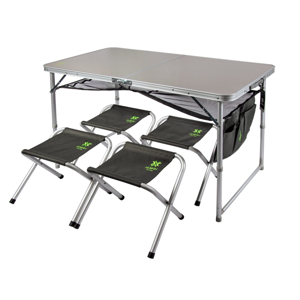 Norfin Runn - rinkinys aktyviam poilsiui gamtoje. Pravers iškylose ar žygiuose, taip pat ir sodo sklype pietaujant. Greitai surenkamas. Prie stalo gali patogiai sėdėti 4 žmonės. Visi rinkinio elementai pagaminti iš aukštos kokybės, patvarių medžiagų. Stalas transformuojasi į lagaminą, kurį patogu pasiimti į keliones, o į jo vidų lengvai telpa visos kėdės. Stalo ilgis yra 1,2 m..