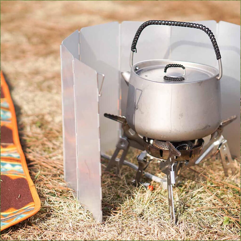 Degiklio vėjo apsauga pagaminta iš aliuminio lydinio, patvari ir atspari karščiui. Padidinkite savo lauko maisto gaminimo efektyvumą su šia patikima stovyklavimo viryklės vėjo apsauga. Ši 10 ypač lanksčių plokščių turinti apsauga atspari vėjui, todėl ji yra būtinas stovyklavimo aksesuaras bet kuriam lauko entuziastui ir privaloma jūsų stovyklavimo reikmenų dalis. Sulankstytos viryklės vėjo apsaugos dydis yra 240 mm x 84.5 mm, o svoris – 277 g (įskaitant nešiojimo dėklą), lengva nešiotis su plastikiniu dėklu. Dujų viryklės vėjo pertvaros apatinė ventiliacijos anga leidžia cirkuliuoti orui, įmontuoti kaiščiai tvirtai pritvirtina vėjo apsaugą prie žemės ir užtikrina, kad apsauga nebus nupūsta vėjo. Sulankstoma stovyklavimo viryklės vėjo apsauga puikiai tinka žvejybai, stovyklavimui, žygiams su kuprine, piknikui lauke gaminimui.
