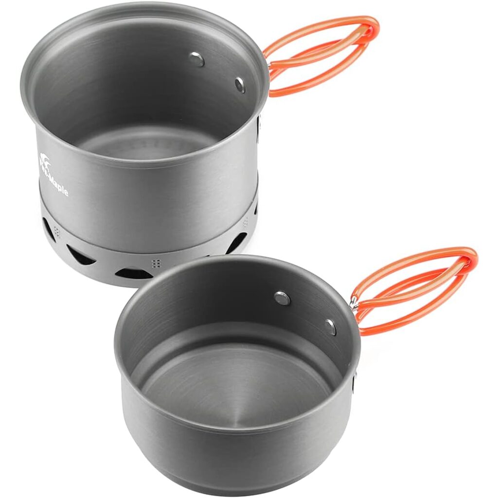 Puodų rinkinys Fire-Maple FMC-217 - kieto anoduoto aliuminio ir nerūdijančio plieno konstrukcija, šie stovyklavimo puodai yra puikus balansas tarp lengvumo ir ilgaamžiškumo lauko virtuvės reikmenims. Šilumokaičio dugnas su sujungimo technika padidina šilumos efektyvumą iki 30% lyginant su įprastu puodu. Tai taupo jūsų laiką ir brangų kurą! Šis rinkinys gali būti naudojamas įvairiais būdais: dviems žmonėms, dviejų patiekalų gaminimui arba tiesiog naudoti kaip dangtį. Termiškai izoliuotos plastikinės rankenos apsaugo rankas nuo karščio, o neslystantis dizainas užtikrina tvirtą ir patogų suėmimą. Taip pat yra vietos papildomoms viryklėms ir stovyklavimo reikmenims. Visas rinkinys sveria tik 268 gramus ir telpa į tinklinį maišelį su sutraukiamu užsegimu, todėl juos lengva nešiotis. Šis virtuvės reikmenų rinkinys skirtas kiekvienam, kuris mėgsta stovyklauti lauke. Jis yra itin nešiojamas, todėl daug patogesnis stovyklavimui, žygiams pėsčiomis, kelionėms su kuprine, iškyloms ir kitai veiklai lauke!