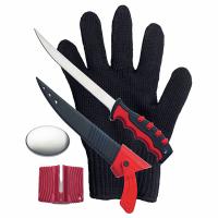 Rinkinį sudaro filė peilis su aštria kaip skustuvas geležte, pagamintas iš aukštos kokybės nerūdijančio plieno, tvirtai sujungtas su ergonomiška, guma dengta rankena, taip pat standus apsauginis dėklas su atlenkiamu diržo laikikliu, peilio galąstuvas, atspari įpjovimas megzta pirštinė iš nailono audinio ir nerūdijančio plieno kvapų šalintojas.