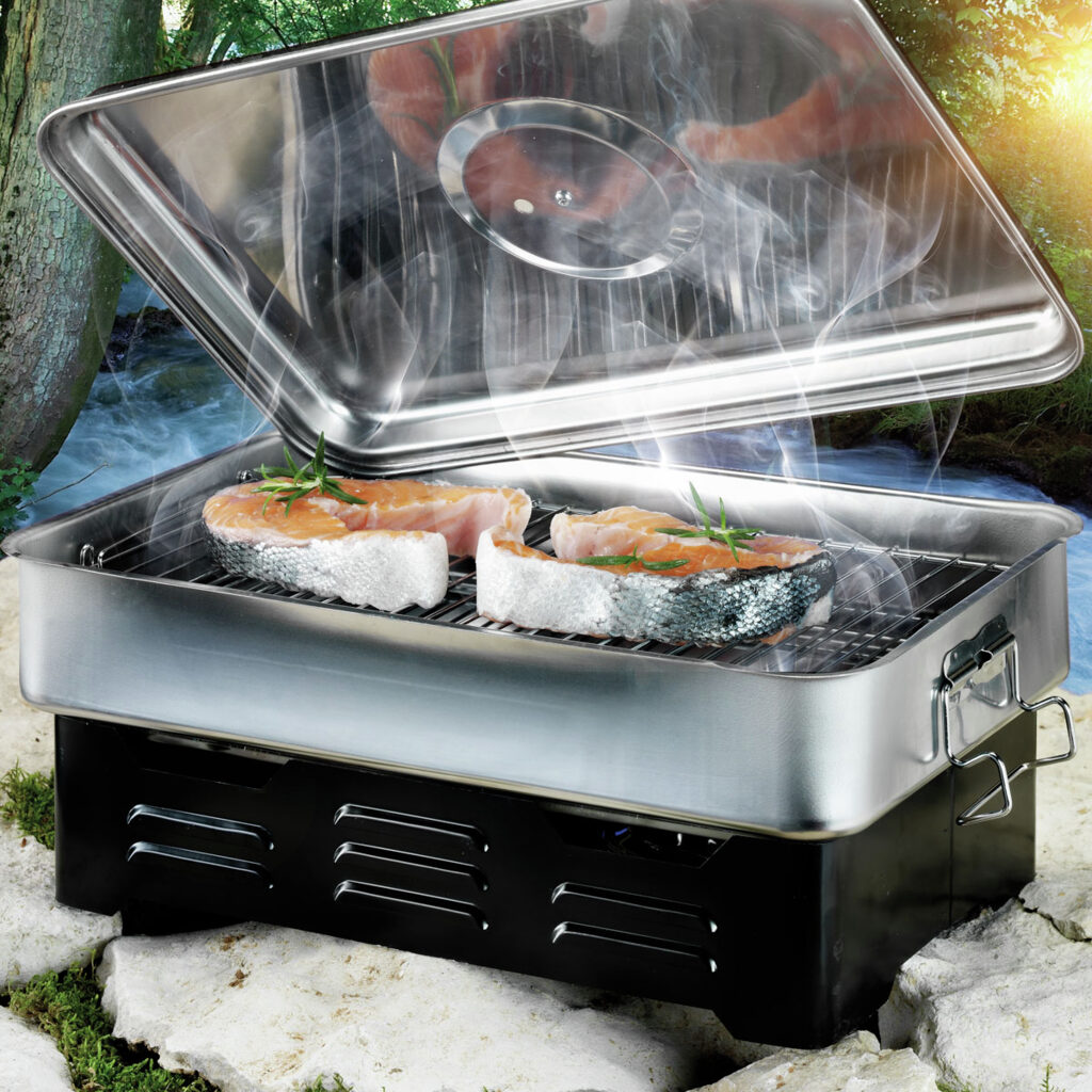Rūkykla su nerūdijančio plieno korpusu, dviem grilio grotelėmis (maždaug keturiems upėtakiams) ir dviem degikliais. Integruota vėdinimo sistema ir degiklius galima tiksliai reguliuoti.