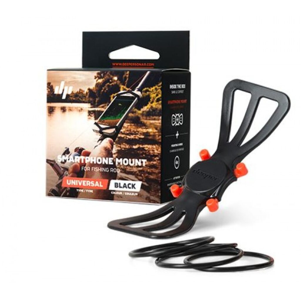 Universalus Deeper išmaniojo telefono laikiklis - saugi, paprastai naudojama silikoninė priemonė. Pritaikyta įtvirtinti telefoną ant bet kokio meškerykočio, stebėti sonaro duomenis nelaikant išmaniojo telefono rankose. Mėtant sonarą ar braidant su juo upėje, svarbiausiai rankose laikyti meškerę!