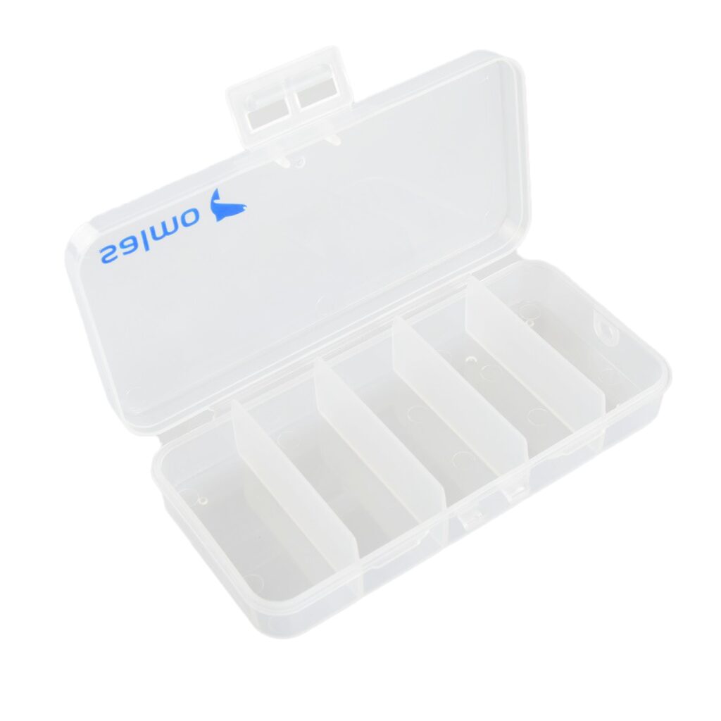 Nedidelė vienpusė dėžutė Salmo su fiksuotomis pertvaromis, žvejybos reikmenims laikyti.