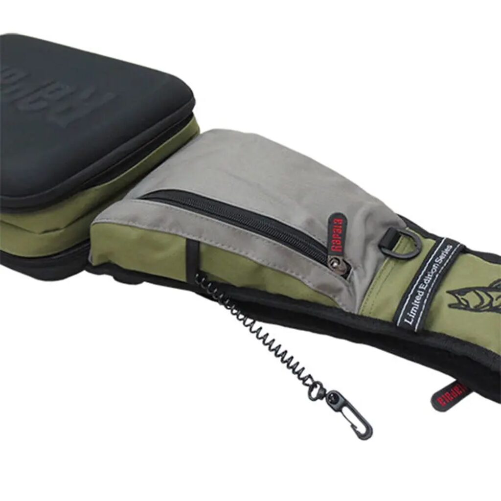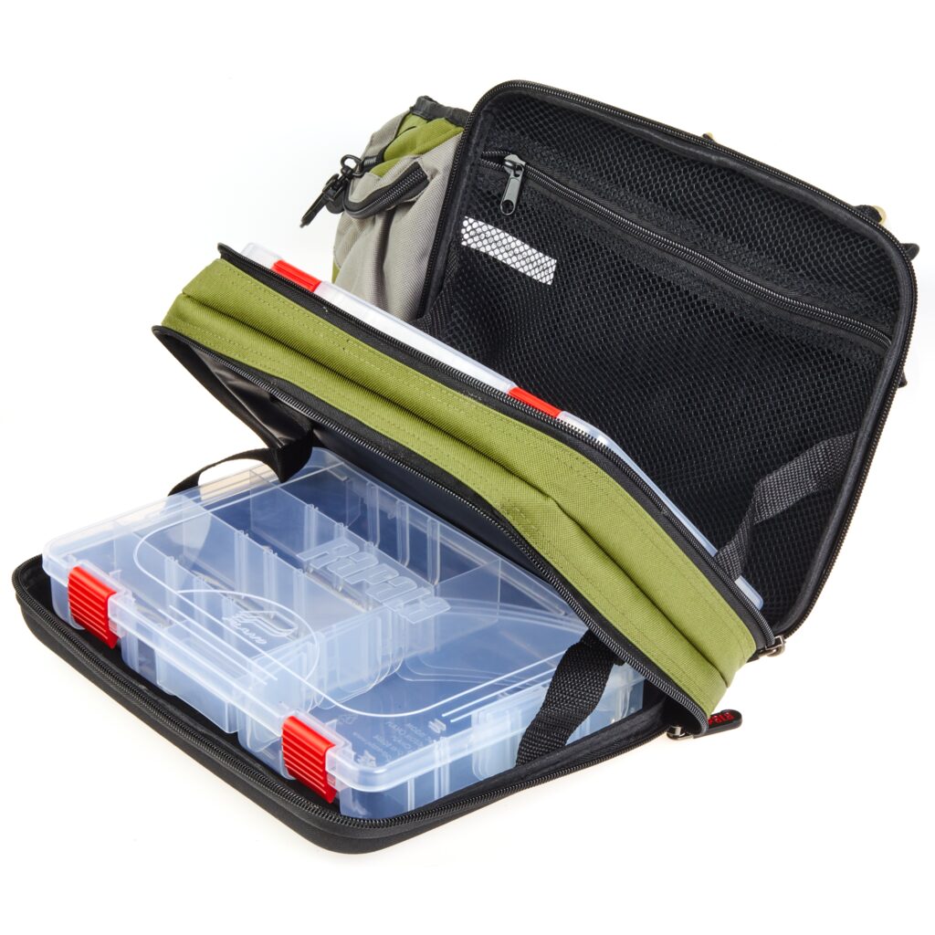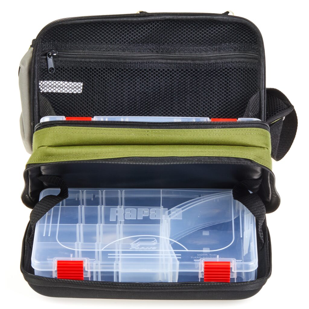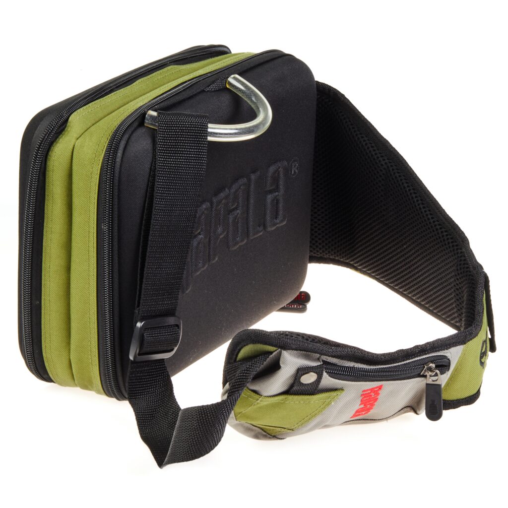 Rapala krepšys per petį - Sling Bag. Populiarus mobilaus spiningautojo krepšio modelis. Tiesiog permeskite per petį ir pirmyn! Su savimi visuomet turėsite dvi talpias Plano 3600 modelio dėžutes, atskirus skyrius papildomiems aksesuarams, telefonui. Sumontuotas ištraukiamas laikiklis žirklutėms, patogus D formos žiedelis kitiems pakabinamiems įrankiams, reguliuojamas diržo ilgis, tad krepšys tiks nešioti net ir apsirengus daug rūbų sluoksnių. Atvertus skyrių, galite naudoti jį kaip darbinį stalčiuką persegant masalus, kalbiukus ar perrišant valą. Jei spiningaujate vaikščiojant krantu - tai iš tiesų yra jums sukurtas krepšys.