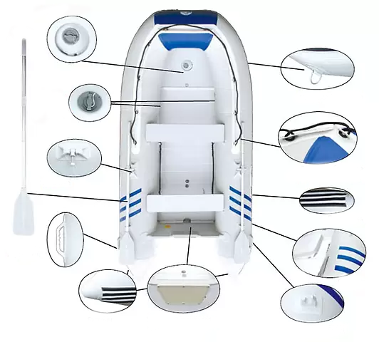 Valtis susideda iš trijų atskirų pripučiamų sekcijų plius viena papildoma sekcija dugne. Suapvalintas priekis padidina naudingą plotą. Visos valtys turi stiprią skersinė siją variklio tvirtinimo vietoje. Pripučiamos valties grindys suteikia papildomą stabilumą. Valtys Outland MX 360 OAL tinka ne tik žvejybai , bet ir šeimos pasiplaukiojimams. Komplekte transportavimo dėklai, pompa, remontinis komplektas.