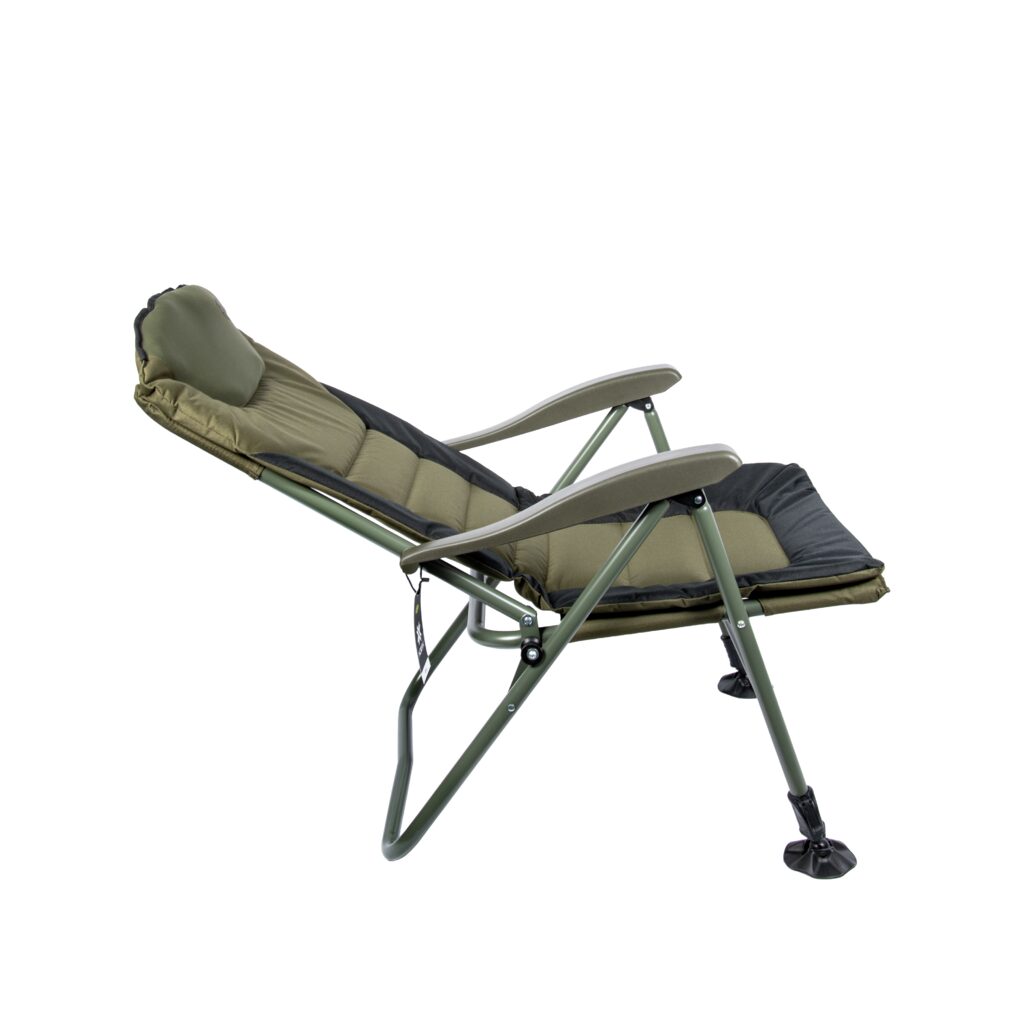 Sulankstoma kėdė su 8 - ių padėčių reguliuojama nugara bei minkšta ir patogia galvos atrama. Priekinės kojos plačiomis atramomis ir galimybe nepriklausomai reguliuoti aukštį, Galinių kojelių konstrukcija suteikia papildomo stabilumo ir nesminga minkštoje žemėje ar smėlyje.