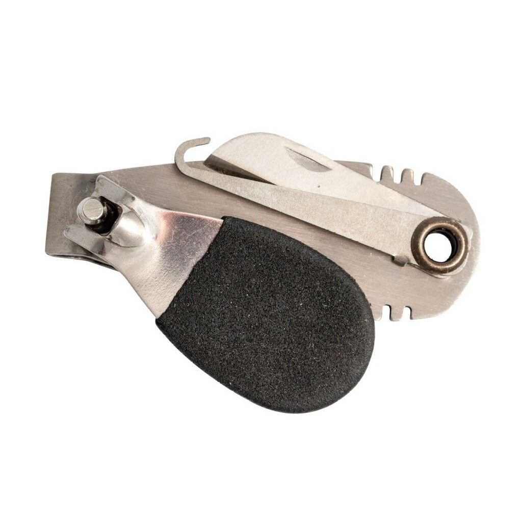 Nerūdijančio plieno konstrukcija su aštriu kaip skustuvas kirpimo kraštu. Didesnė nykščio atrama leidžia lengvai naudoti net ir mūvint pirštines. Komplekte yra kabliukas ir pjovimo peiliukas.