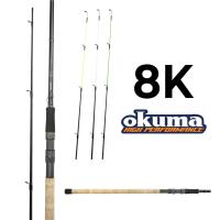 Okuma 8K Feeder meškerė pasižymi itin lengva 40T anglies blanko konstrukcija, greitesne akcija su 2 stiklinėmis ir 1 angline, skirtingo galingumo viršūnėlėmis, "Fuji DPS" ritės laikiklis ir AAA kokybės kamštinė rankena.