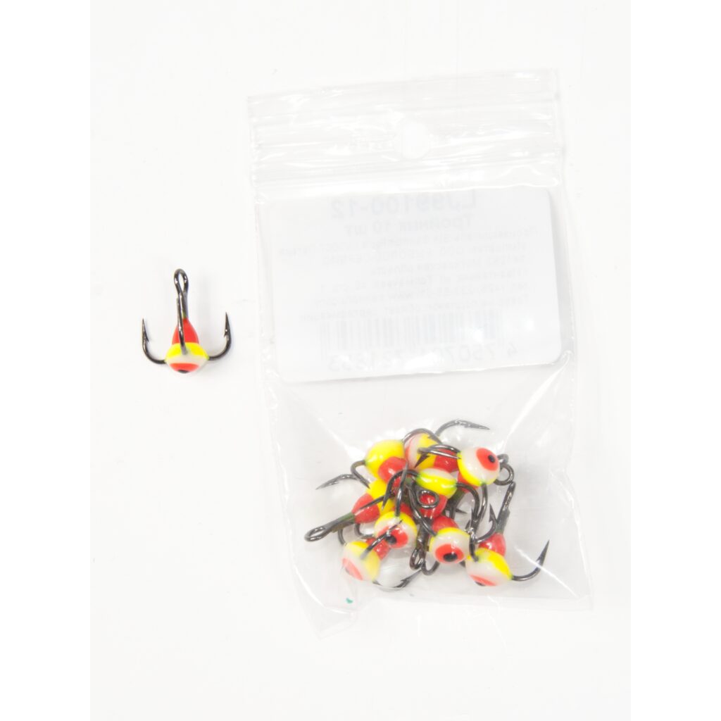 VMC trišakiai su plastikiniu spalvos akute. Yra naudojami švytuoklių ir vertikalių masalų rinkiniui. Plastikinė akutė turi fosforo - mėgstamą sterkų ir kitų plėšriųjų žuvų spalvą.