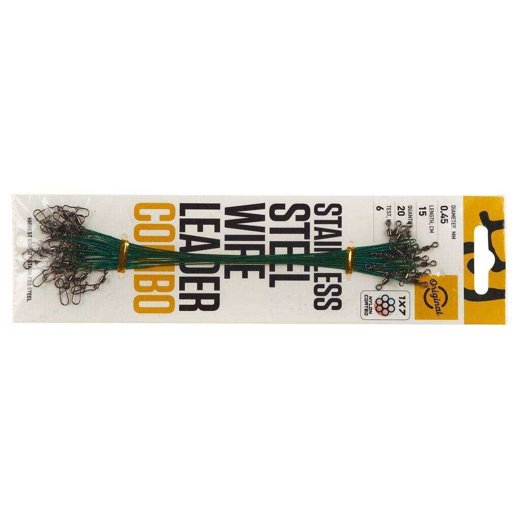 Lucky John Original 1x7 - plieninis pavadėlis lydekų žvejybai. Minkštas, plieninis septynių gijų pynimas iš išorės padengtas sintetiniu siūlu su specialiu impregnavimu. Pavadėliai turi aukštos kokybės suktuką sujungimui su pagrindiniu valu ir suktuką su karabinu - masalui pritvirtinti. Dviejų suktukų buvimas gerokai sumažina valo susisukimą.