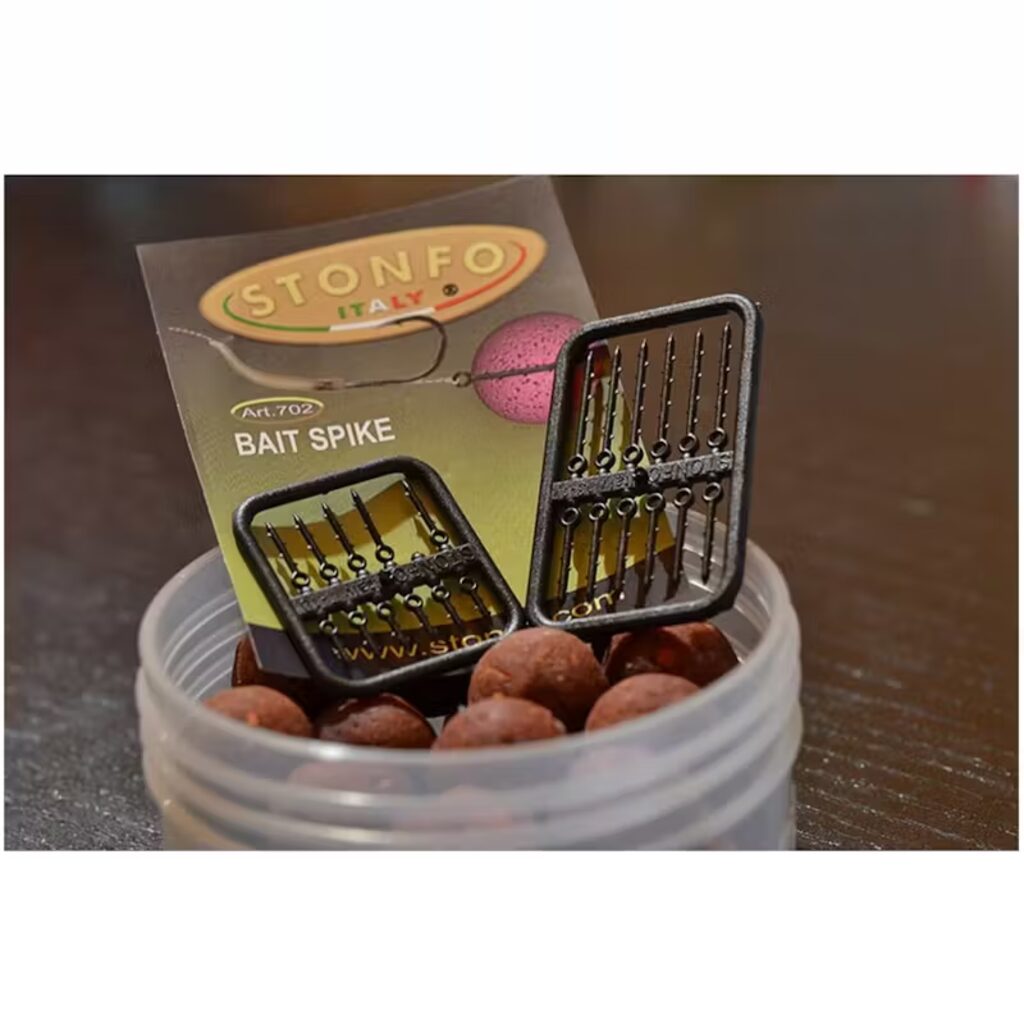 Stonfo Bait Spike - tai kieto plastiko strypeliai, kuriais galima tvirtinti minkštus boilius, peletes, kukurūzus, silikoninius masalus, kad juos būtų galima pritvirtinti tiesiai prie kabliuko. Dėl savo nedidelio svorio laikikliai idealiai tinka net ir plaukiojantiems jaukams. Abiejose pusėse esantys danteliai užtikrina geresnį masalo sukibimą.