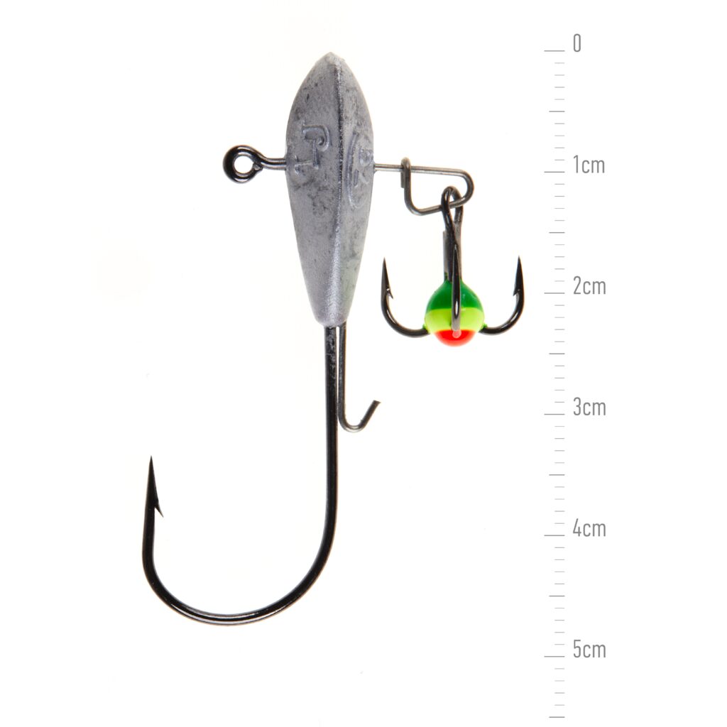 Žieminis galvakablis Lucky John Winter Jig - tinka žvejoti lydekas, ešerius minkštaisiais masalais iš po ledo.Galvakablis kartu su VMC trišakiu, padailintu ryškiu plastikiniu lašu.