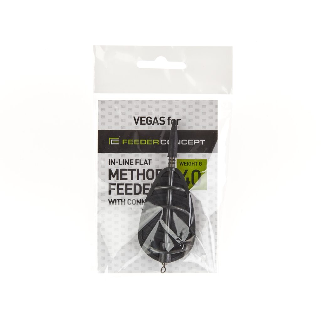 Vegas Feeder Concept Flat Method - tai plokščia šėrykla, skirta žvejoti "Flat" metodu, kuris kasmet tampa vis populiaresnis. Ji naudojamas karpiams, karosams, lynams ir kitoms žuvų rūšims gaudyti palyginti sekliuose telkiniuose su stovinčiu vandeniu, naudojant specialius aktyvius masalus. Ji nepakeičiama žvejojant smarkiai apaugusiuose tvenkiniuose su dumblėtu dugnu. Skirtingai nuo klasikinių šėryklų, taikant "Flat" metodą nereikia sukurti šėrimo taško dugne, o tai labai supaprastina žvejybos procesą, leidžia atlikti skubų telkinio žvalgymą ir prireikus greitai pakeisti žvejybos vietą.